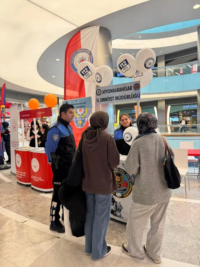 Afyonkarahisar İl Emniyet Müdürlüğü, 25 Kasım Kadına Yönelik Şiddete Karşı Uluslararası Mücadele Günü kapsamında Park Afyon AVM’de vatandaşlara yönelik kapsamlı bir bilgilendirme faaliyeti gerçekleştirdi.
