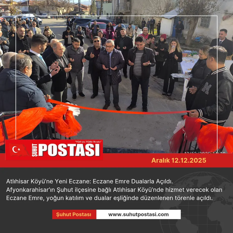 Afyonkarahisar’ın Şuhut ilçesine bağlı Atlıhisar Köyü’nde hizmet verecek olan Eczane Emre, yoğun katılım ve dualar eşliğinde düzenlenen törenle açıldı.