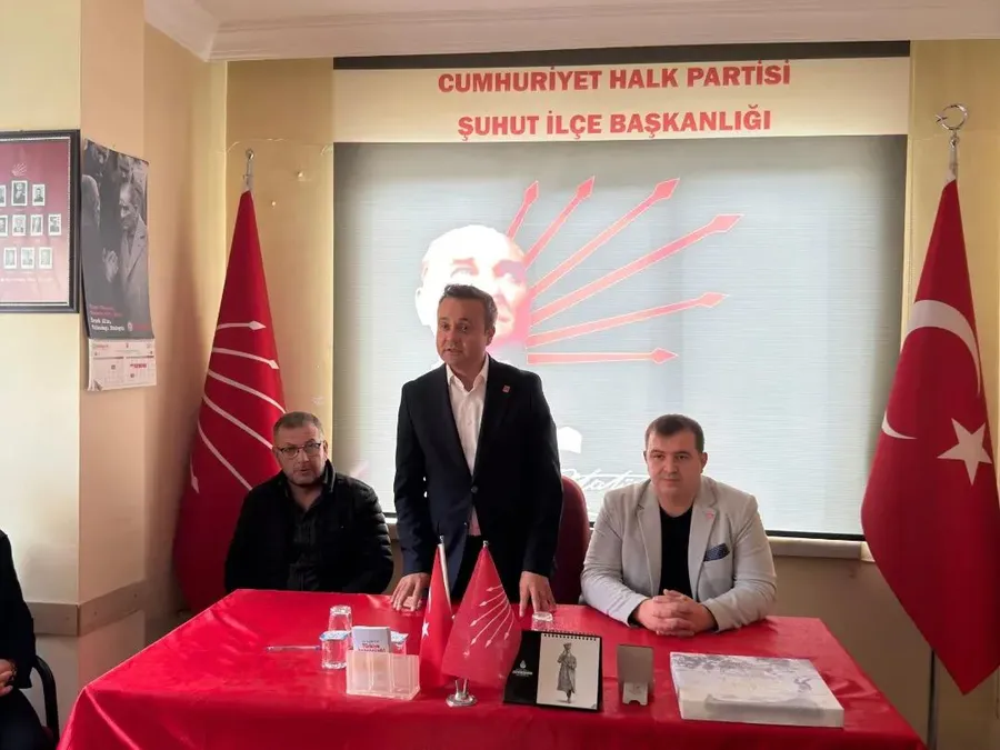Şuhut İlçe Başkanlığı binasında samimi bir atmosferde gerçekleşen ziyarette, CHP İl Başkanı Faruk Duha Erhan’a il yönetim kurulu üyeleri ve parti koordinatörleri de eşlik etti.