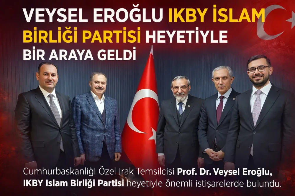 Orman ve Su İşleri Bakanlığı döneminde hayata geçirdiği vizyoner projelerle hafızalarda yer edinen, Cumhurbaşkanlığı Özel Irak Temsilcisi Veysel Eroğlu, Irak Kürt Bölgesel Yönetimi (IKBY) İslam Birliği Partisi heyetiyle önemli bir görüşme gerçekleştirdi.