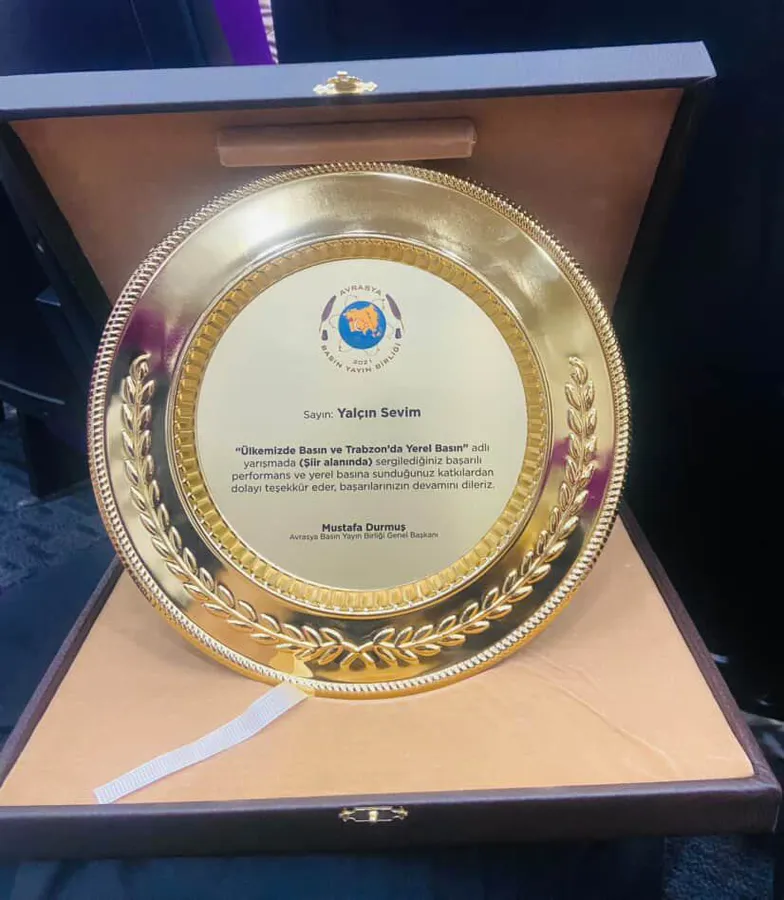 Programda basın, sanat, edebiyat ve kültür alanlarında başarılı isimlere ödüller takdim edildi. Gecede Afyonkarahisarlı Eğitimci – Şair – Yazar Yalçın Sevim, “Şiir Dalında Yılın En Başarılı Şairi” ödülüne layık görülerek önemli bir başarıya imza attı. Ödülünü Avrasya Basın Yayın Birliği Genel Başkanı Mustafa Durmuş’un elinden alan Yalçın Sevim, törende yaptığı kısa teşekkür konuşmasında şu ifadeleri kullandı: