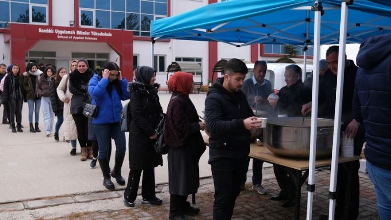 Sandıklı Belediyesi Kültür ve Sosyal İşler Müdürlüğü tarafından organize edilen, Kaplıca İşletme Müdürlüğü tarafından hazırlanan çorbalar Üniversite öğrencilerine; Okul Müdürü Dr. Öğretim Üyesi Koray Gürpınar, Kültür ve Sosyal İşler Müdürü Hasan Kaşdaş ve okul görevlileri tarafından dağıtıldı.