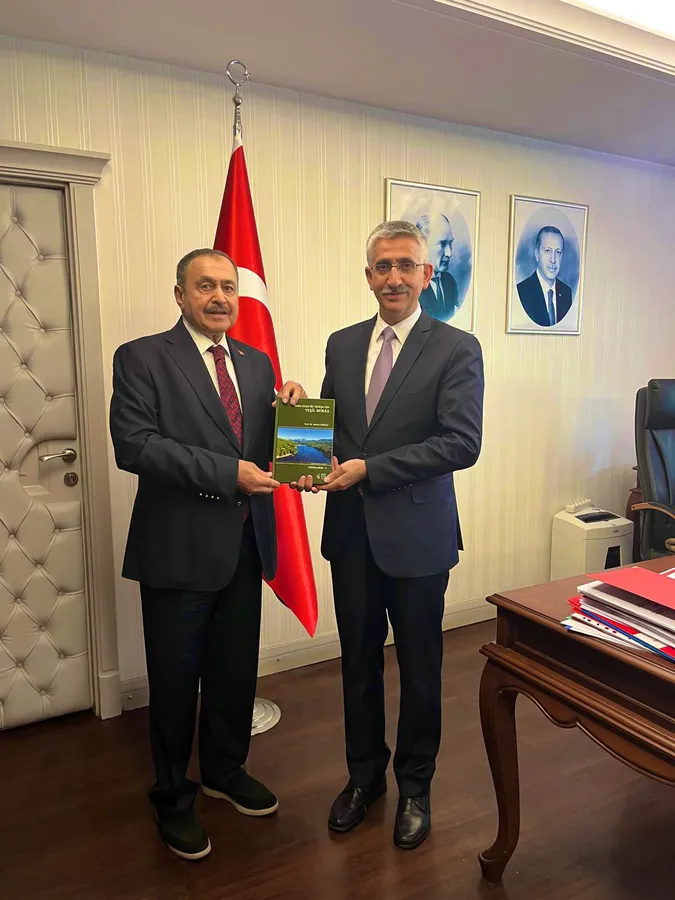 Prof. Dr. Veysel Eroğlu’nun üst düzey ziyaretlerinde, Türkiye’nin çevre politikaları ve sürdürülebilir kalkınma vizyonu adına kaleme aldığı “Yeşil Miras” kitabını hediye etmesi, görüşmelere ayrı bir anlam kattı.