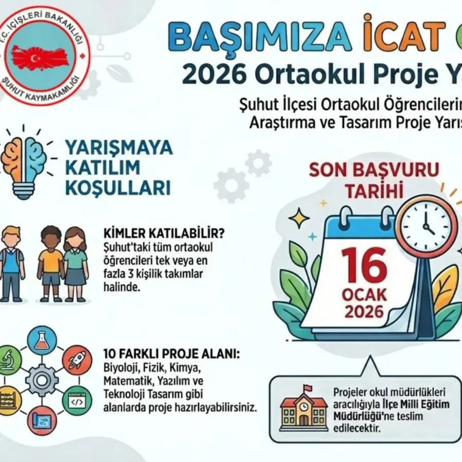 Afyonkarahisar’ın Şuhut ilçesinde, Şuhut İlçe Milli Eğitim Müdürlüğü öncülüğünde ortaokul öğrencilerine yönelik düzenlenecek olan “Başıma İcat Çıkar" Tasarım ve Araştırma Projeleri Yarışmasının tanıtım toplantısı yapıldı.