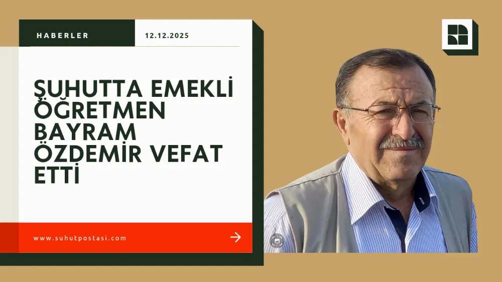 Şuhut İlçemiz İstiklal Mahallesinden Merhum Osman ÖZDEMİR ve Merhume Şehriban ÖZDEMİR’in oğlu, Merhum Ramazan ÖZDEMİR, Remzi ÖZDEMİR ve Alime ERTUĞRUL’un kardeşi, Emine ÖZDEMİR’in eşi, Osman ÖZDEMİR ve Gökhan ÖZDEMİR’in babası Emekli Öğretmen ve İlçemiz Esnaflarından BAYRAM ÖZDEMİR vefat etmiştir.
