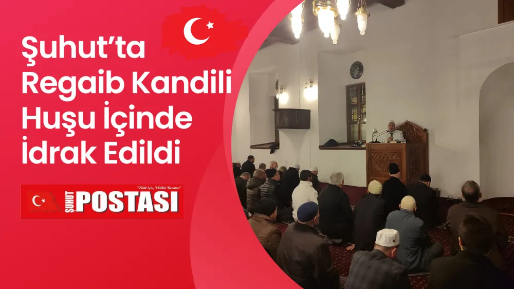 Afyonkarahisar’ın Şuhut ilçesinde Regaib Kandili, vatandaşların yoğun katılımıyla manevi bir atmosferde idrak edildi. İlçemiz Büyük Camii’nde düzenlenen program, Kur’an-ı Kerim tilaveti ve ilahiler eşliğinde yapılan dualarla başladı.