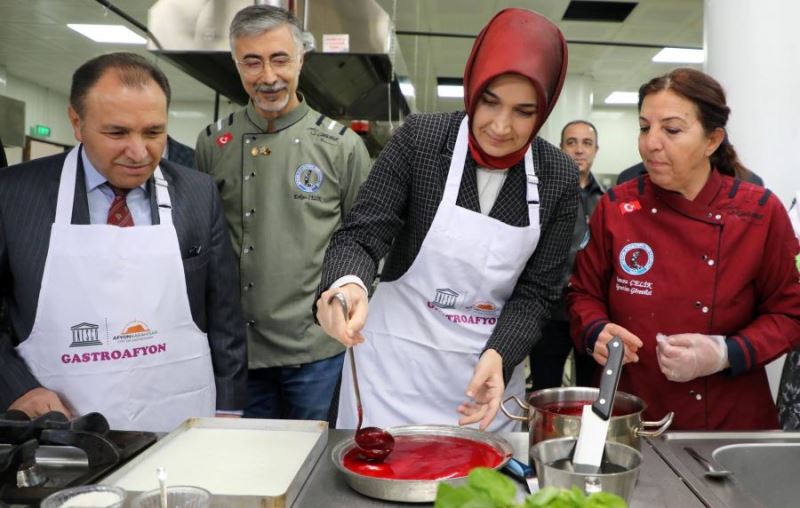 Öğretim Görevlisi Tansu Çelik, UNESCO tarafından Gastronomi şehri seçilen Afyonkarahisar’ın lokal lezzetleri içinde yer alan vişne, yumurta, tavuk patates, kaymak ürünlerine yer verilerek öğrencilerde farkındalık oluşturmayı hedeflediklerini belirtti. Öğretim Görevlisi Erkan Çelik ise Afyonkarahisar’ın özel gün tatlıları arasında yer alan paluze tatlısının özellikle doğum ve davet yemeklerinde sunulan sağlıklı besleyici bir tatlı olduğunu, öğrenciler tarafından ilgiyle hazırlanıp tüketildiğini ifade etti.